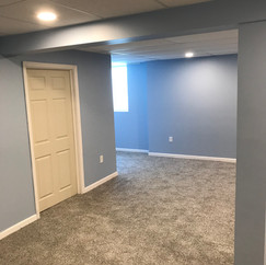 A large area of our focus went towards the repairs for the basement of the home, where the fire started. In addition to the cosmetic damages that needed to be addressed in order to ensure the space was back to pre-fire conditions, we needed to ensure the safety and structure of the house. The fire destroyed one of the main structural beams within the basement that supported the living room, dining room and kitchen. This beam needed to be removed and replaced to ensure the structural integrity of these rooms, and the rest of the home. In order to do this, we built temporary support walls that were removed once the new beam was securely in place. Code requirements in this township also required us to install a basement egress window as the basement did not previously have one.