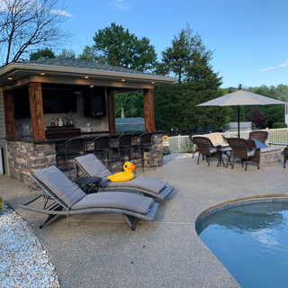 The most noticeable – and breathtaking – area of this project is the bar. We spent the most amount of time, as well as the majority of our budget in the bar area to ensure it surpassed the homeowner’s expectations upon completion. As the pool was already existing in the space, the first thing we needed to do was ensure the finished bar area would tie into the pool to create one cohesive space. We worked with architect Matt Piotrowski to build the initial 6-post structure while the team at RJE Home worked on the design and layout. All aspects of this project were designed with the regional climate and geographic area in mind.