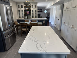 Discover this stunningly remodeled kitchen Warminster, Bucks County, PA! We’ve transformed the space merging the kitchen and dining rooms into a fabulous open-concept design. Plus, we’ve revamped the living room and staircase for a complete first-floor makeover! gorgeous countertops from Gothic Stone Inc and custom cabinets by Masterbrand, what RJE Home Remodeling can bring to life for you, from concept to design to completion!
